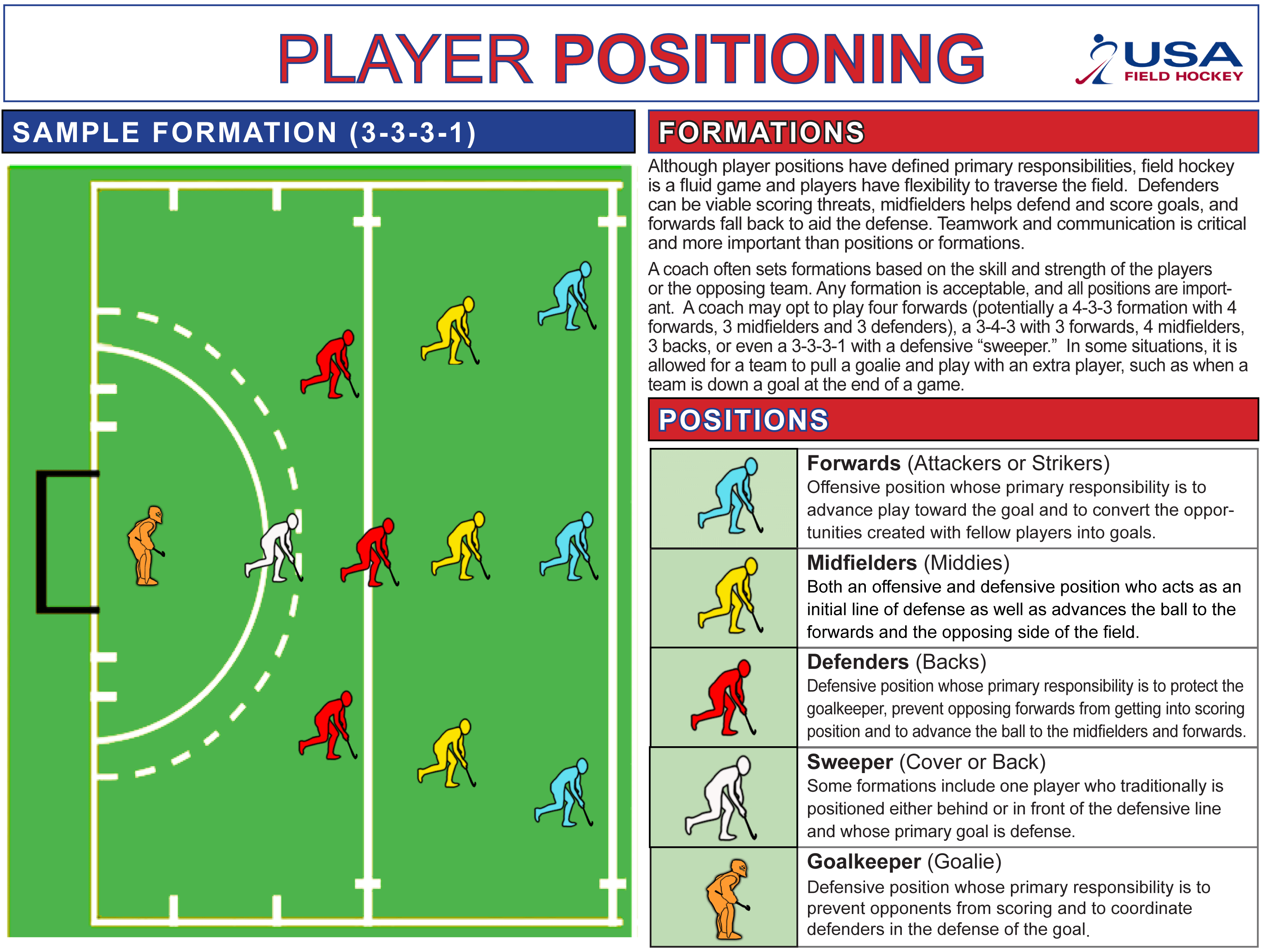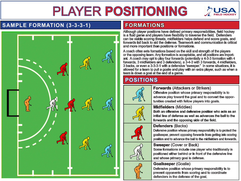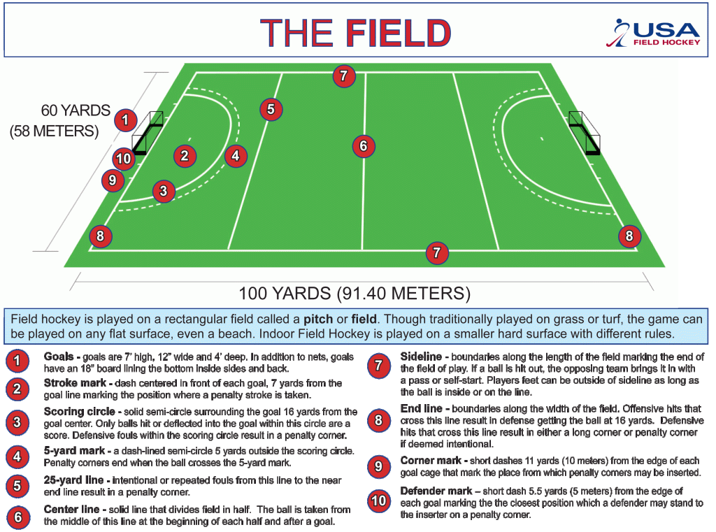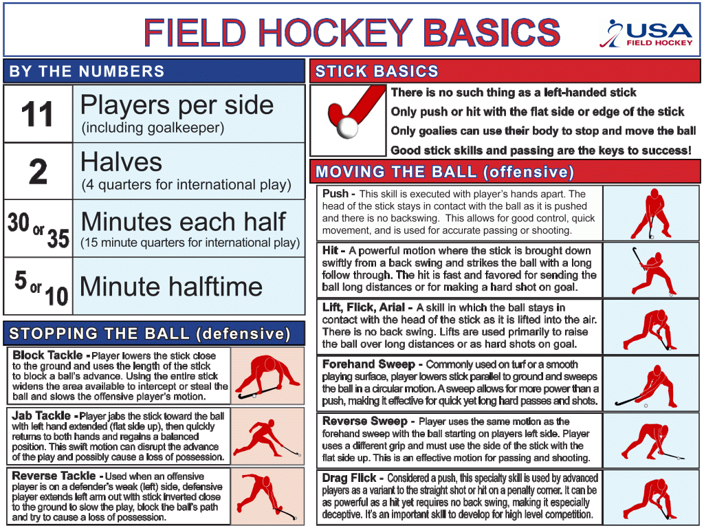 Thanks to USA Field Hockey and their mission to grow the game they’ve made available an excellent piece on field hockey basics. Please see http://www.teamusa.org/usa-field-hockey/usa-field-hockey-101 for more information and a downloadable brochure.